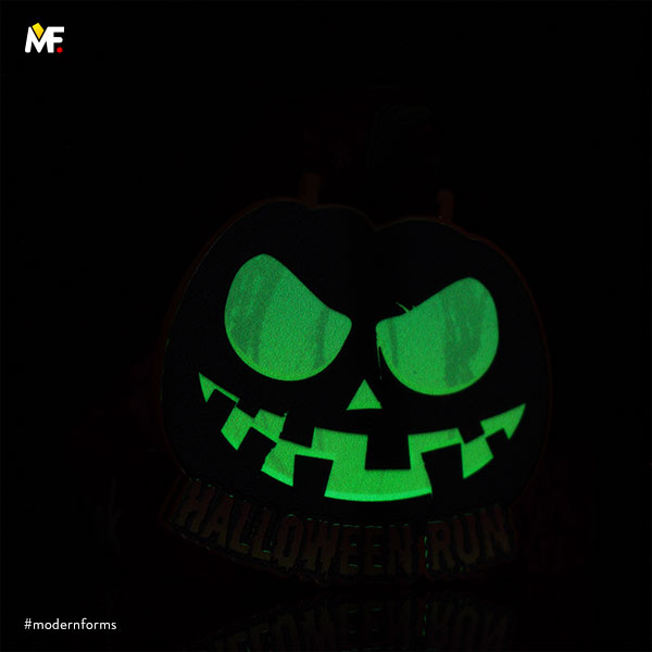 Medale o nieregularnym kształcie, jednoelementowe, jednostronne, wykonane ze stali czarnej malowanej na kolor pomarańczowy. Teksturowany przestrzennie z dopasowaną kolorystycznie wstążką z nadrukiem. Istnieje możliwość dopasowania wzoru do wytycznych klienta.
