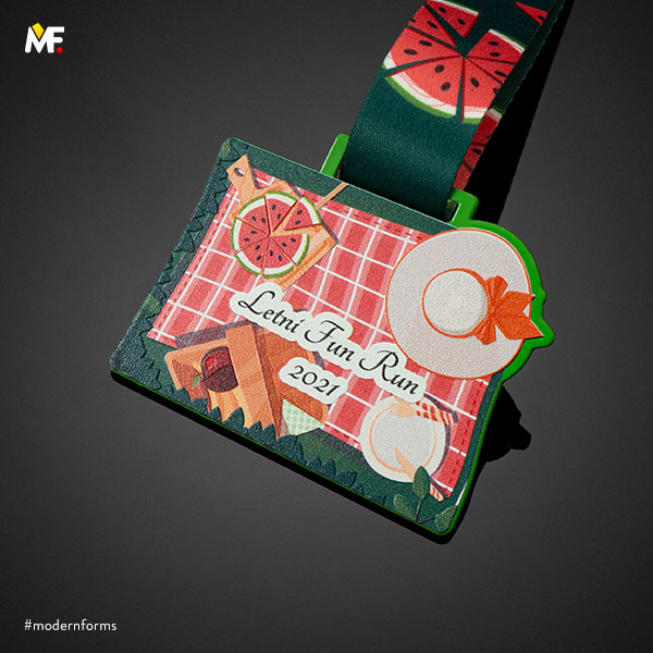 Medal nieregularny, jednoelementowy, jednostronny, wykonany ze stali czarnej malowanej na kolor zielony. Teksturowany przestrzennie z dopasowaną kolorystycznie wstążką. Istnieje możliwość dopasowania wzoru do wytycznych klientna.