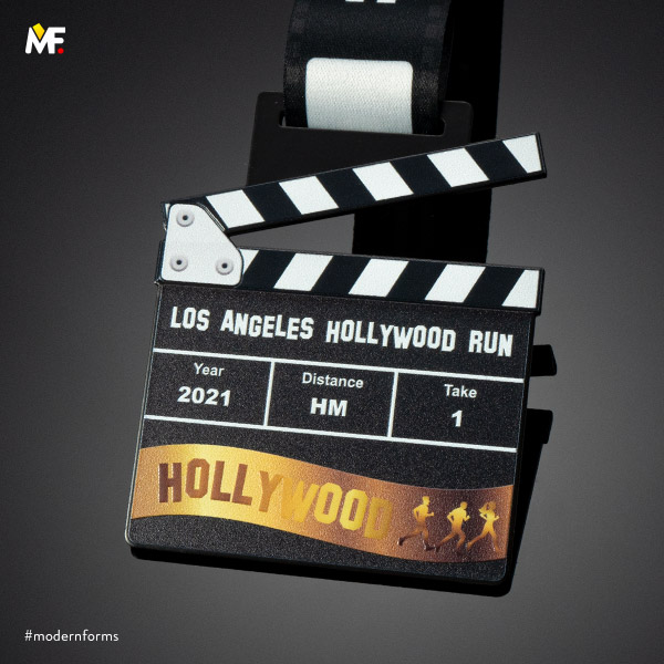 Medal nieregularny, jednoelementowy, dwustronny, wykonany z metalu malowanego na kolor czarny. Teksturowany przestrzennie z dopasowaną kolorystycznie wstążką z nadrukiem. Istnieje możliwość dopasowania wzoru do wytycznych klienta.